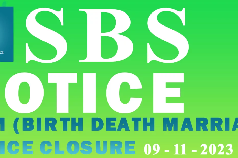 NOTICE: BDM (Birth Death Marriage) Office Closure | 09-11-2023 Dear valued customers, We wish to inform you that the Birth, Death, and Marriage (BDM) office will be closed today, effective from 12:00 PM. We apologize for any inconvenience this may cause and appreciate your understanding.… Read More »BDM (Birth Death Marriage) Office Closure | 09-11-2023
